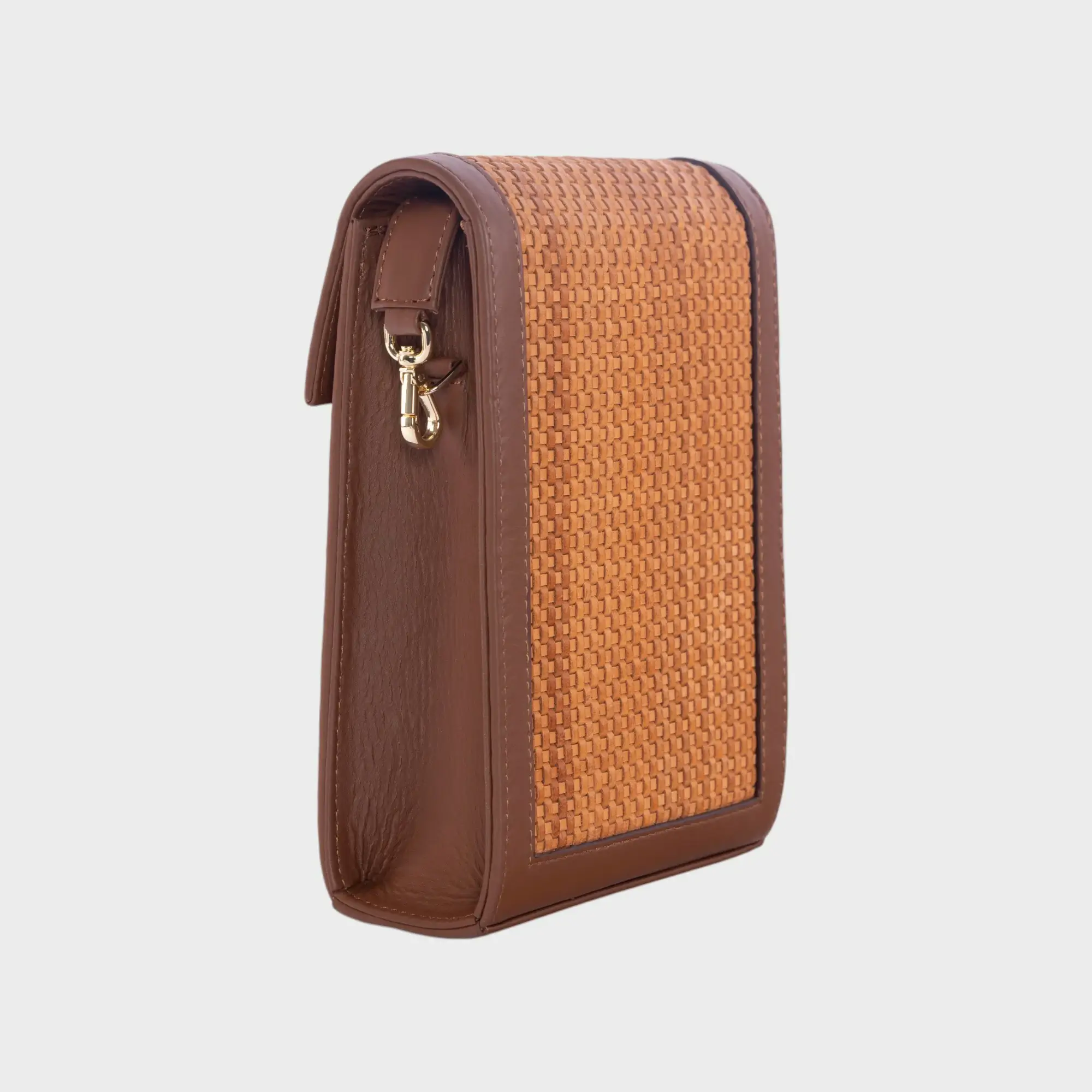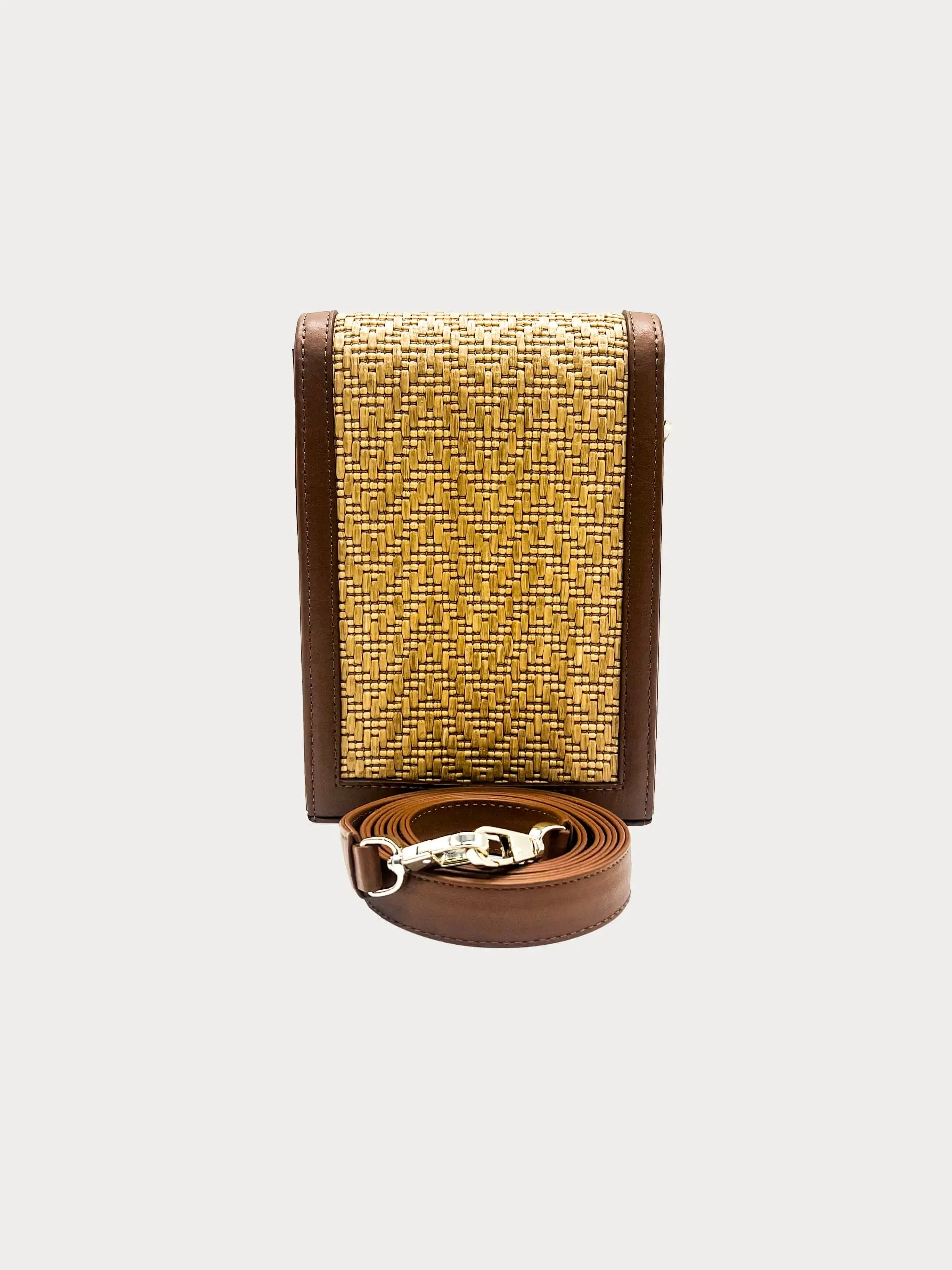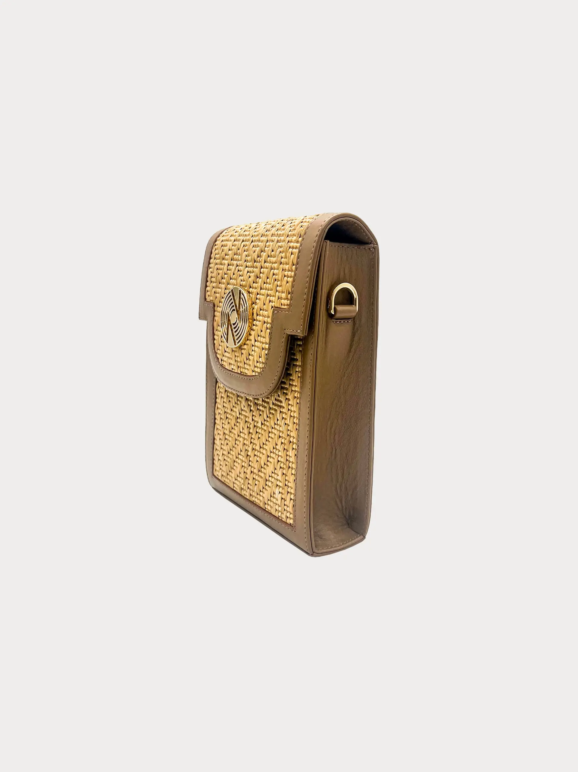 Vue autrement par Nahyel, la Pochette Jackie ne protège pas que votre téléphone. Bien que très pratique pour emporter son smartphone partout, il est aussi conçu pour refléter ce goût pour l’authenticité. La Pochette associe notamment du raphia et du cuir, faisant d’elle une pièce d’exception.