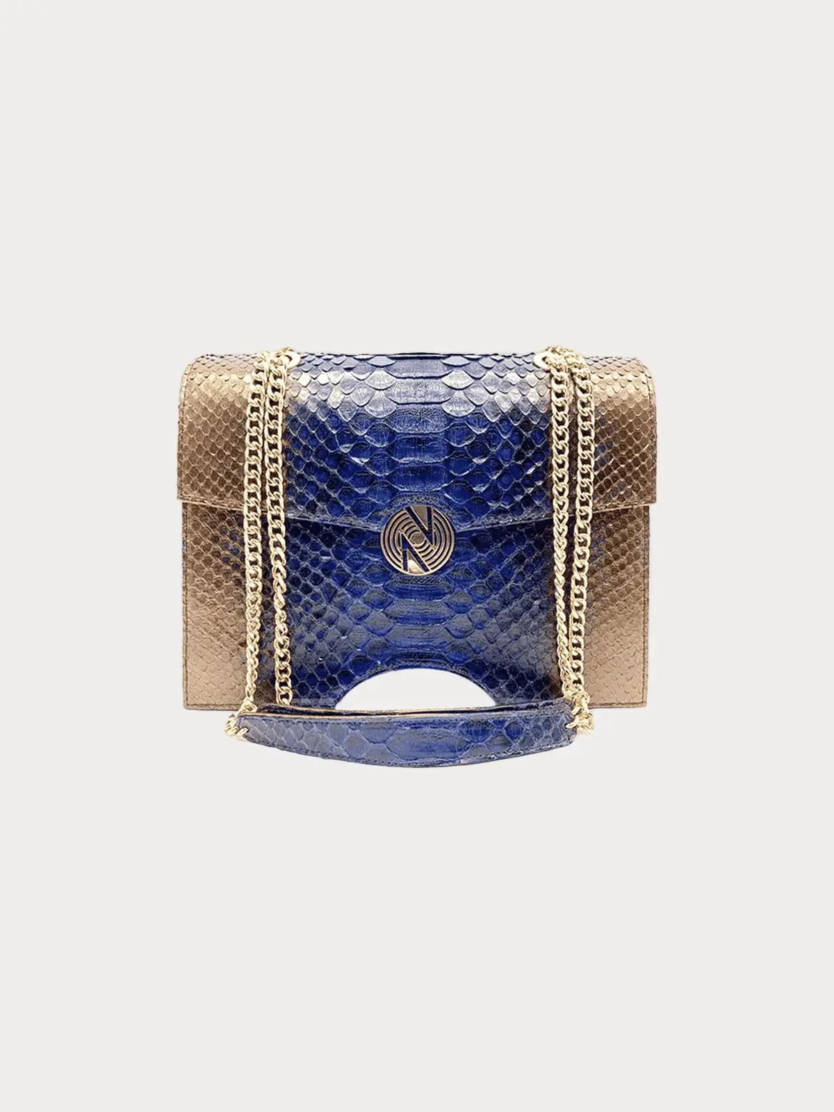 Le Sac Anta Cuir Python Bleu Marron reprend les lignes d’un trésor cher aux Ashanti : Le tabouret des rois. De cette inspiration culturelle est née une pièce haut de gamme, arborant aussi du cuir python pour plus de modernité. De la classe à l’état pur et le porter ne peut que vous assurer plus d’élégance.