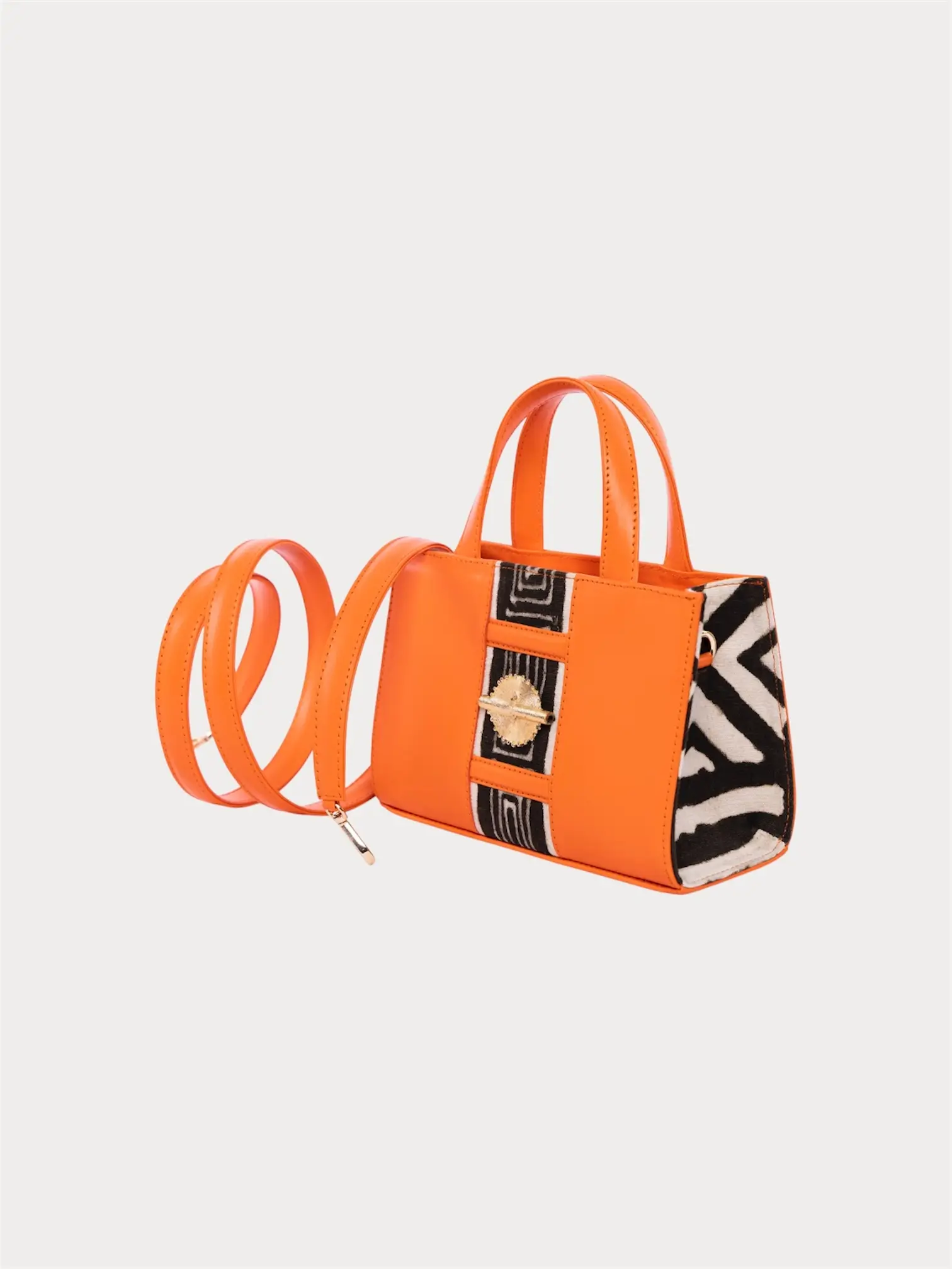 Disponible en divers coloris, le Sac Cléclé PM s’adapte aux goûts et s’accorde selon les tenues. Ses nuances de couleur, on les doit notamment à un cuir raffiné, mais aussi à des pagnes typiquement africains; sonnant comme un retour aux racines. Mais surtout, les Sacs Cléclé doivent aussi leur inspiration à Clémentine, une cuisinière spécialiste de plats délicieux et dont la finesse se ressent à travers chacune de ces pièces.