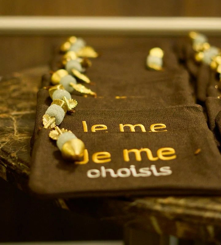 Une rencontre initiée par Nahyel ne saurait être complète sans un clin d’œil à la maroquinerie. Chaque participante est en effet repartie avec une pièce exclusive, une pochette délicatement brodée de la mention “Je Me Choisis”.